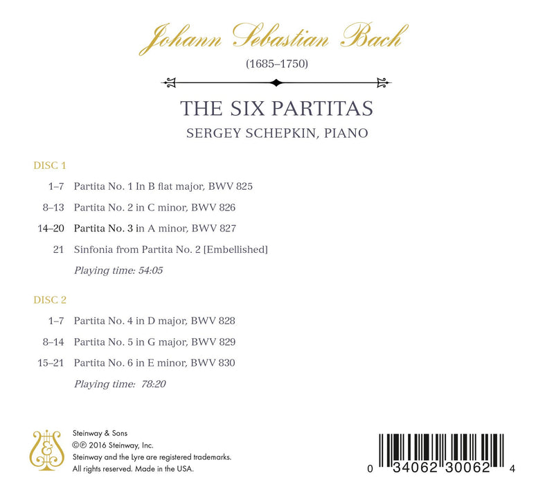 Steinway & SonsBach: The Six Partitas / SchepkinSergey Schepkin first recorded Bach’s Partitas in the late 1990s for the Ongaku label. The performances stood out for contrapuntal clarity, technical...