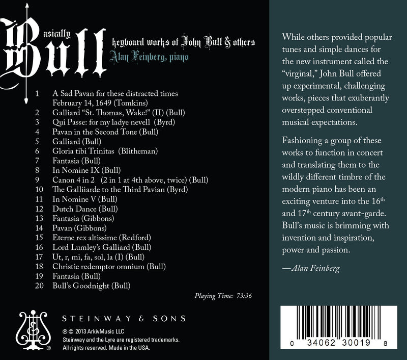 Steinway & SonsBasically Bull / Feinberg"Feinberg translates the exquisite chromatic ruminations and intricate counterpoint of Bull's keyboard works, and some contemporaries, into the lush sound world of...