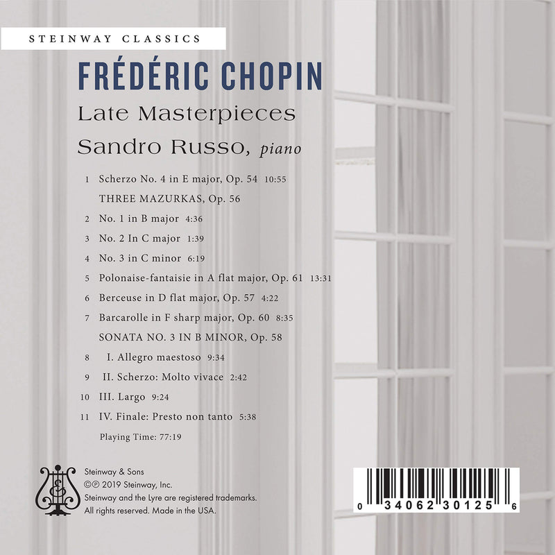 Steinway & SonsChopin: Late Masterpieces / RussoDelving into the world of Chopin during his later years, "Chopin – Late Masterpieces" features some of his undisputed treasures from that...