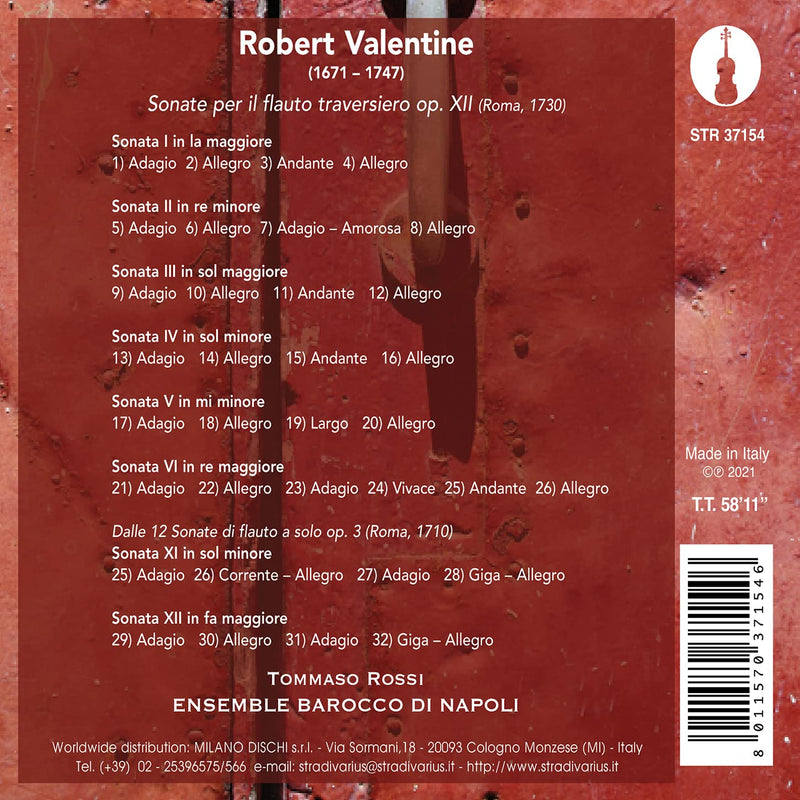 The violinist, cellist, flutist, and oboist Robert Valentine (Leicester, 1671 - Rome, 1747) was a prolific author of sonatas - especially for...