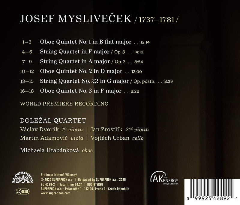 SupraphonMyslivecek: Oboe Quintets, String Quartets