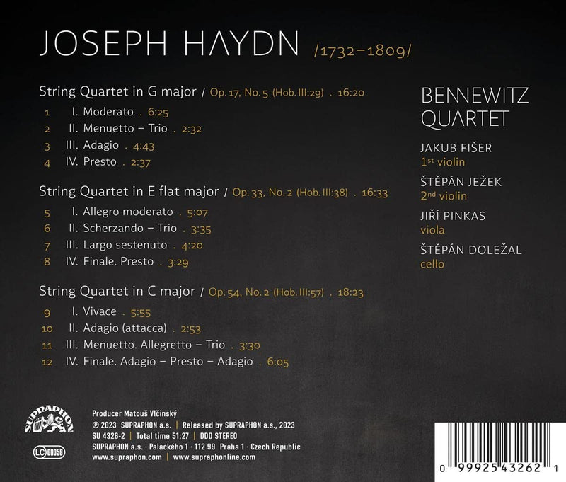 SupraphonHaydn: String Quartets Op, 17, 33 & 54 / Bennewitz Quartet