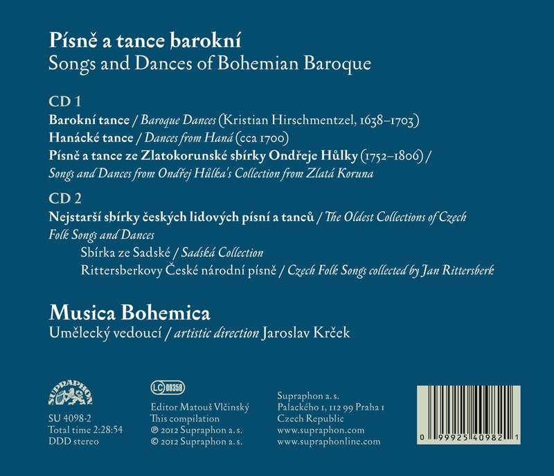 PÍSNE A TANCE BAROKNÍ: SONGS AND DANCES OF THE BOHEMIAN BAROQUE • Jaroslav Krcek, cond; Musica Bohemica • SUPRAPHON SU 4098-2 (2...