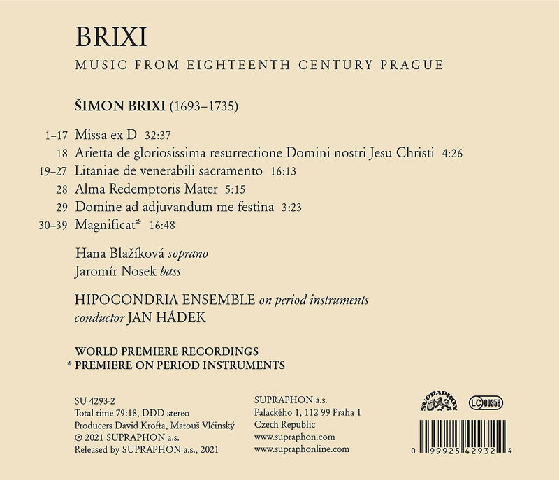 SupraphonBrixi: Music from 18th Century Prague / Hadek, Hipocondria Ensemble