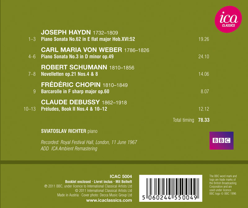 It's hard to focus the chaotic discography of Richter, that has not left complete editions of his favorite composers. We got only...
