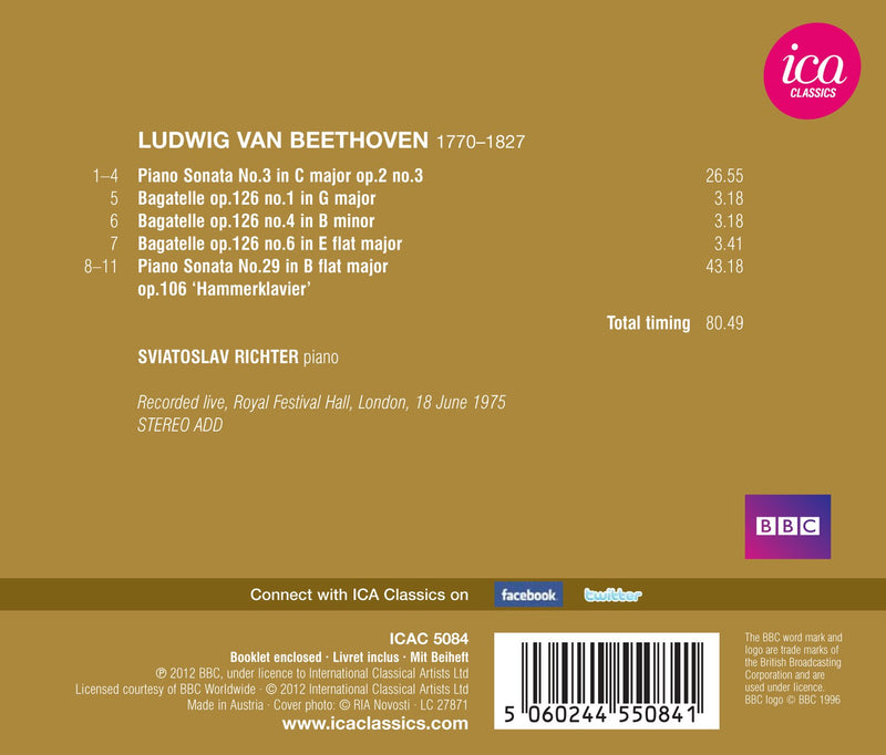 Sviatoslav Richter was one of the greatest interpreters of the 20th century. Beethoven's 'Hammerklavier' Sonata was one of the main features of...