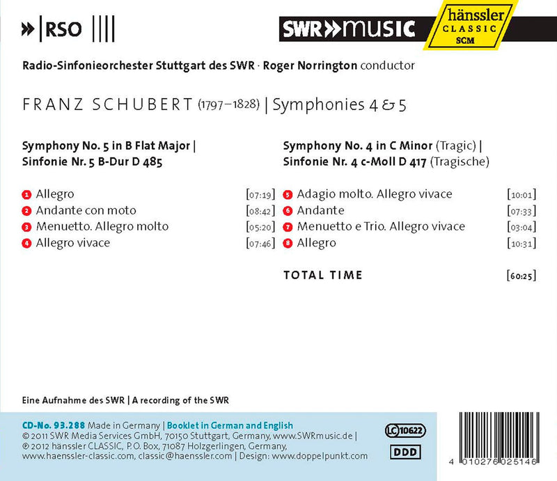 On SaleSWRSchubert: Symphonies 4 & 5