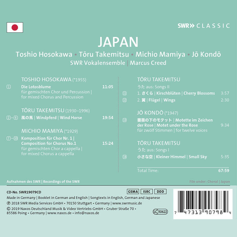 This is a new installment in the SWR Vokalensemble's country series. It contains excellent performances of rarely performed and recorded choral works....
