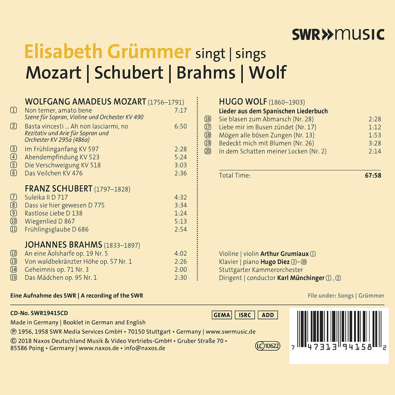 SWRElisabeth Grummer sings Mozart, Schubert, Brahms & Wolf