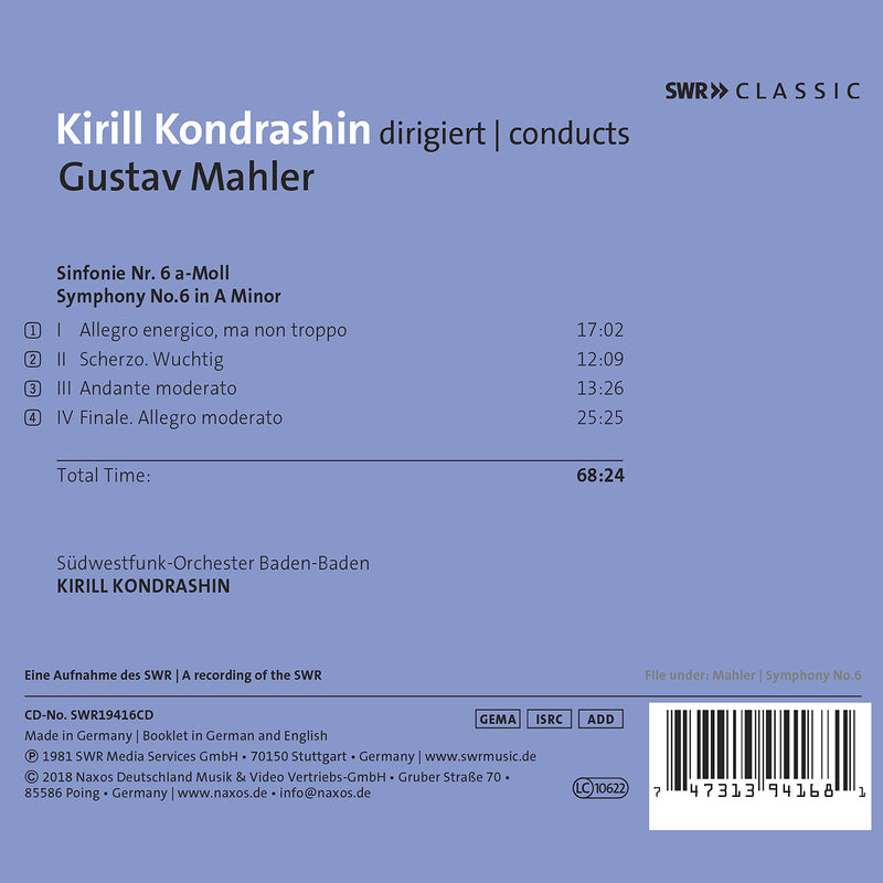 SWRMahler: Symphony No. 6 / Kondrashin, SWR Orchestra Baden-Baden