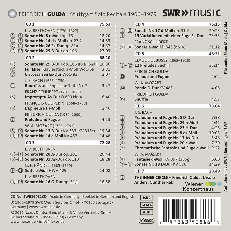 SWRFriedrich Gulda - The Stuttgart Solo Recitals 1966-1979This is the first of four releases that feature the SWR recordings of Friedrich Gulda. All recordings on this album are being...
