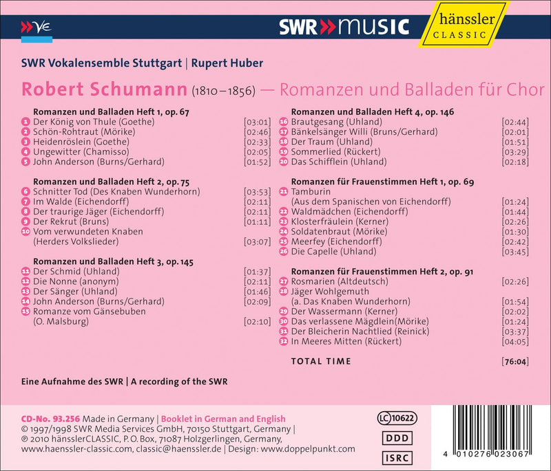 SWRSchumann: Romanzen Und Balladen Fur Chor
