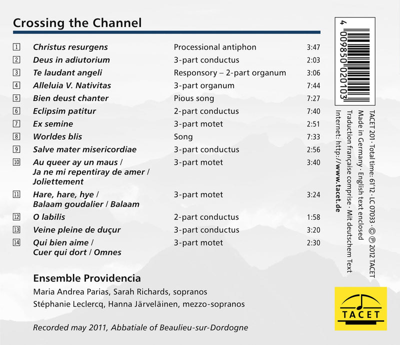 Crossing the Channel is a result of Paris based Ensemble Providencia exploring the curious developmental connections in language and music between France...