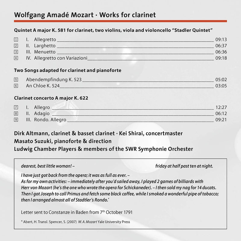 TACET MusikproduktionMozart: Stadler Quintet K. 581, Clarinet Concerto K. 622 & Aria K. 523 & 524 / Ludwig Chamber Players
