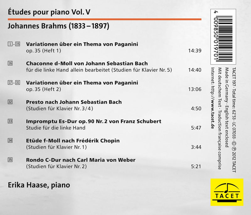 Erika Haase completes her etude cycle with a view onto Johannes Brahms, who is less well known as a composer of etudes....