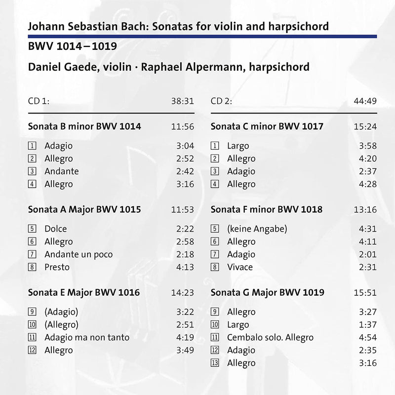 TACET MusikproduktionJohann Sebastian Bach: Sonatas for violin and harpsichord BWV 1014-1019 / Gaede, Alpermann