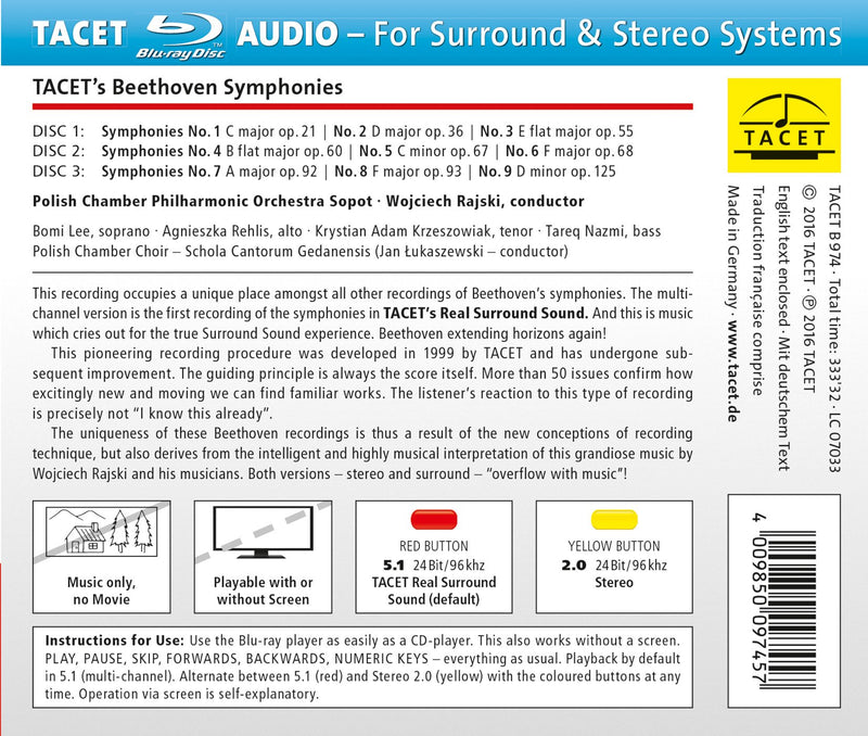 TACET MusikproduktionBeethoven: Symphonies Nos. 1-9 / Rajski, Polish Chamber Philharmonic [Blu-ray Audio]