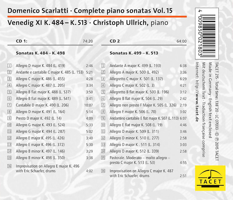 TACET MusikproduktionDomenico Scarlatti: Complete Piano Sonatas, Vol. 15 - Sonatas K.484-k.513 + Bonus-tracks With Eric Shaefer