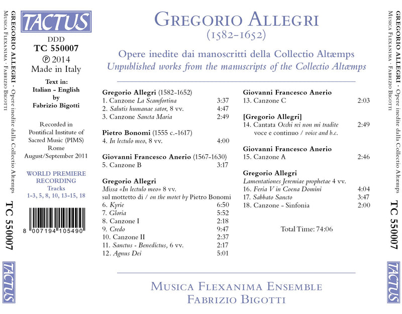 TactusAllegri: Opere inedite dai manoscritti della Collectio Altae