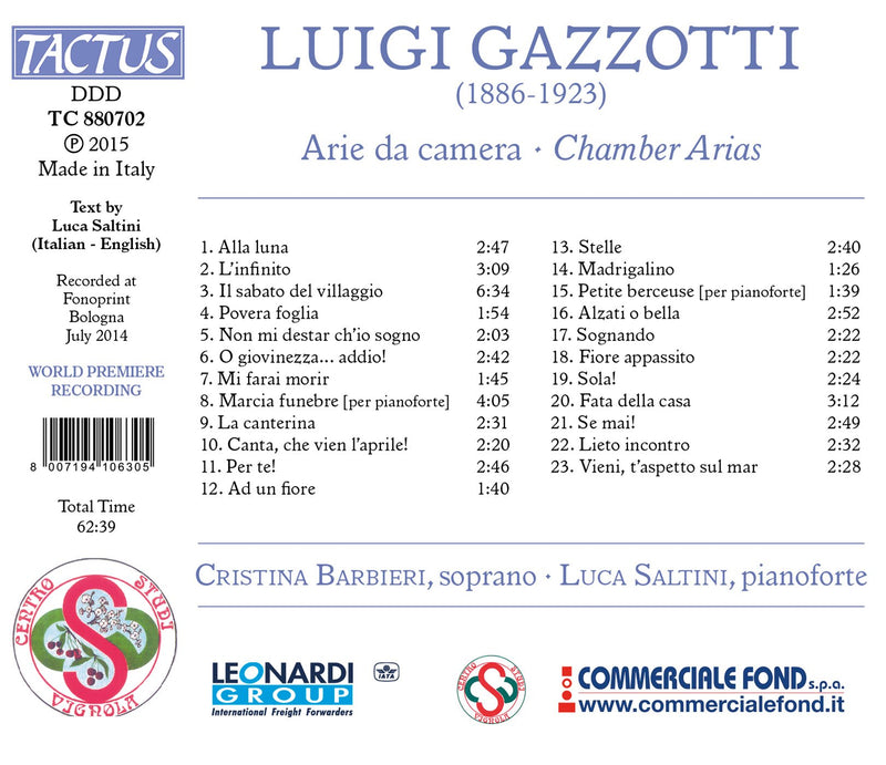 Italian composer Luigi Gazzotti from Modena studied at the Bologna Conservatory where he received honors in composition. The works featured here are...