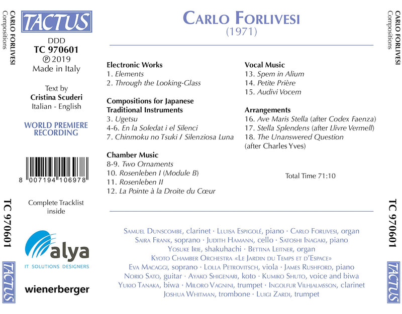 The internationally acclaimed young composer Carlo Forlivesi moves in a geographical and temporal space led by electronic, orchestral, chamber music and ethnic...