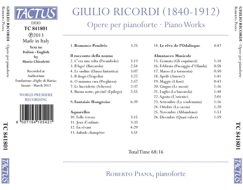 This previously unpublished opus of Carlo Rossaro's work has been deposited with the Library of the Conservatory of Music in Torino Italy....