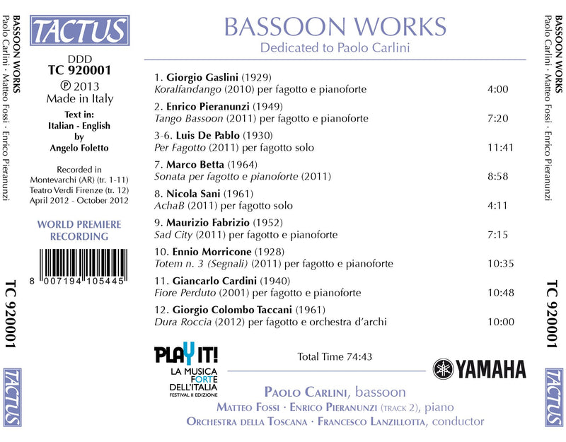 TactusBossi: Opere per violino e pianoforteIn spite of the predominance of the opera in Italy during the nineteenth century, chamber music and symphonic music had never died...