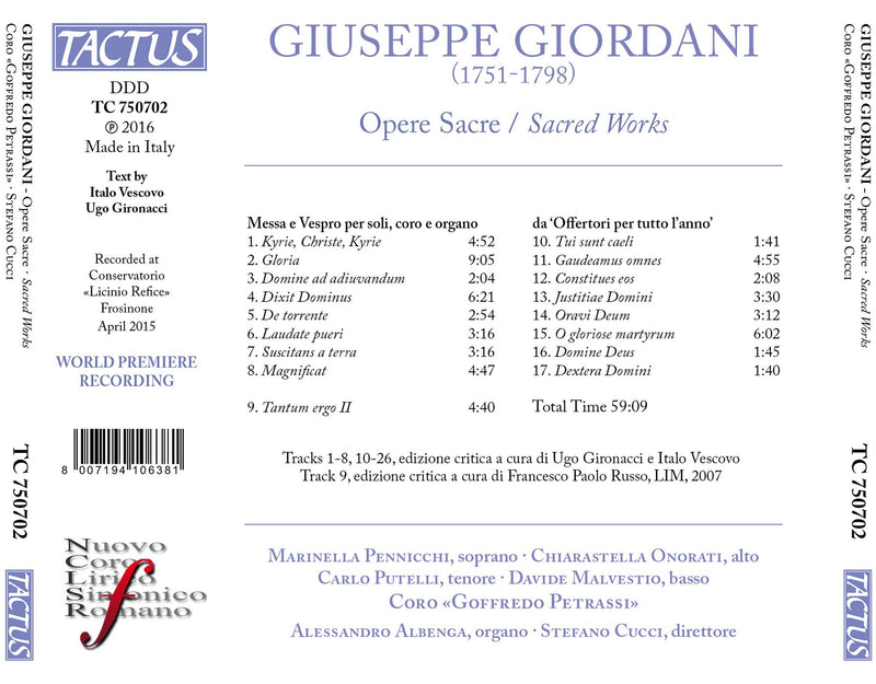 Born into the magnificent eighteenth century Neapolitan school, the writings of Giuseppe Giordani have been an object of musicological interest, due in...