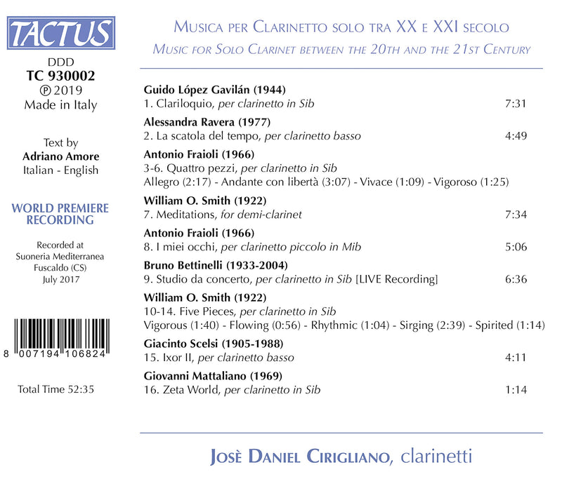 Jos� Daniel Cirigliano, who is considered "one of the best contemporary clarinettists" (Roberto Zecchini, in "Musica", May 2015, no. 84), now, after...