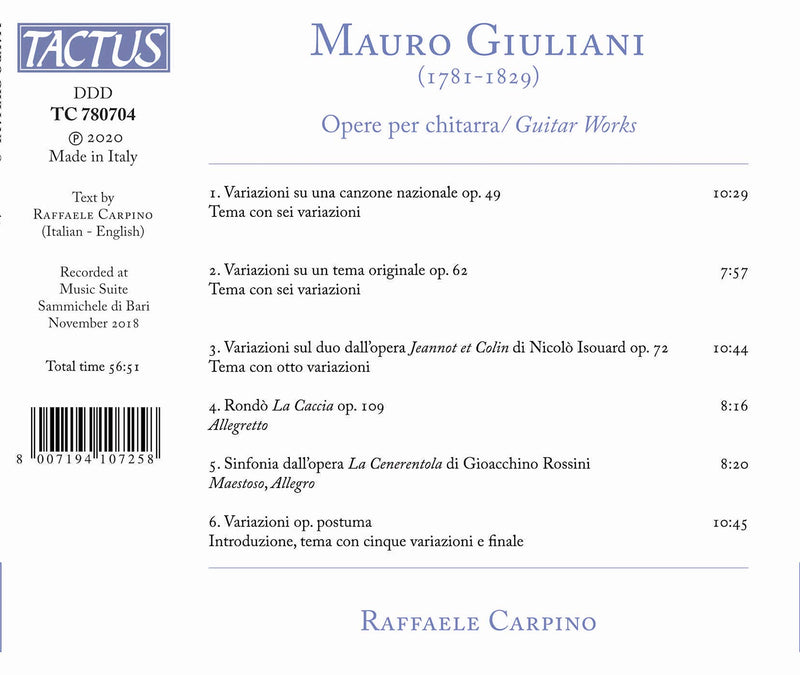 TactusMauro Giuliani: Opere Per Chitarra / Raffaele Carpino
