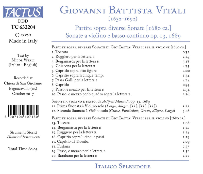 TactusVitali: Partite & Sonate, Op. 13 / Italico Splendore