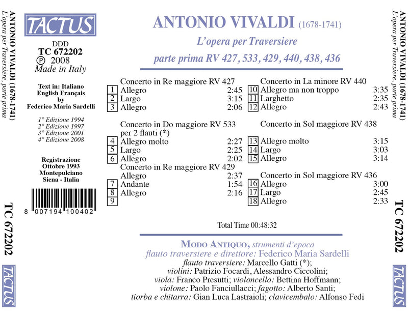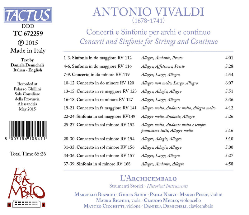 TactusVivaldi: Concerti e Sinfonie per archi e continuo