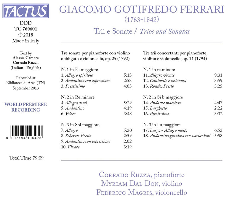 TactusFerrari: Trii et Sonate / Ruzza, Don, Magris