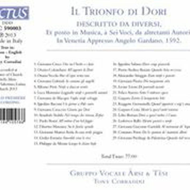 • Il Trionfo di Dori was printed in 1592. A Venetian nobleman, Leonardo Sanudo asked 29 authors to compose a poem, then...