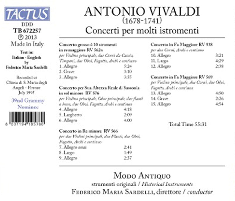 On SaleTactusVivaldi: Concerti Per Molti Istromenti / Sardelli, Modo Antiquo