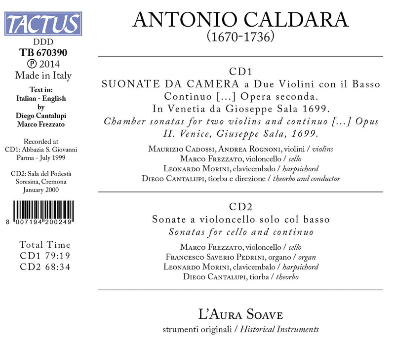 On SaleTactusCaldara: Sounate da camera Op. 2 & Cello Sonatas