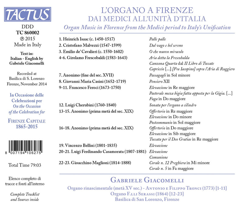 On SaleTactusL'organo a Firenze dai Medici all'Unità d'Italia