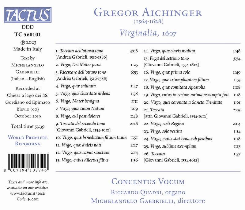 TactusAichinger: Virginalia, 1607 / Concentus Vocum