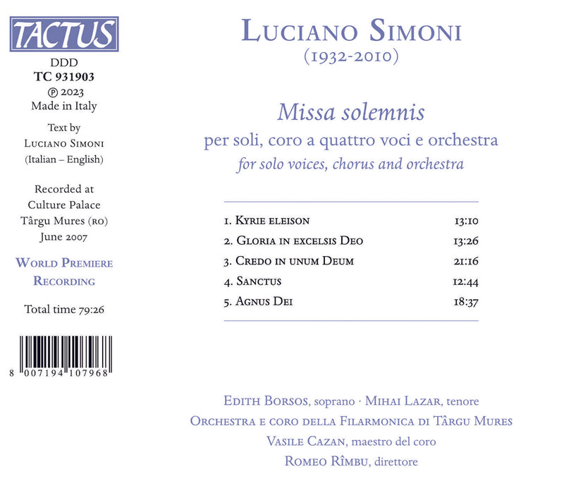 After the album dedicated to chamber music [TC931901] by the composer Luciano Simoni – passed away in 2010 – in this cd...