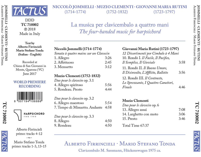 TactusJommelli, Clementi & Rutini: La musica per clavicembalo a quattro mani / Firrincieli, Tonda