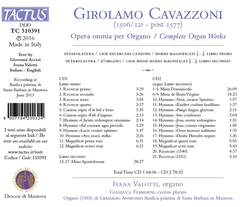 This release contains the complete works for organ by Girolamo Cavazzoni and is a must for Italian Renaissance music lovers. The works...