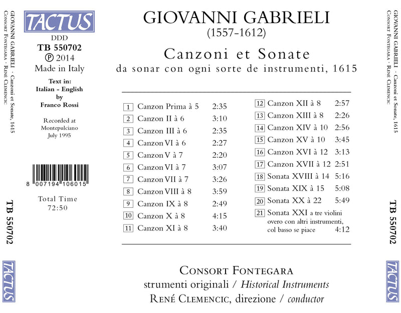TactusGiovanni Gabrieli: Canzoni et Sonate, 1615 / Clemencic, Consort Fontegara
