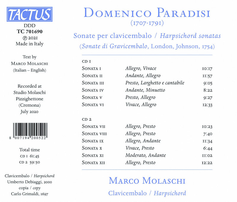 TactusParadisi: Sonate per clavicembalo / Molaschi