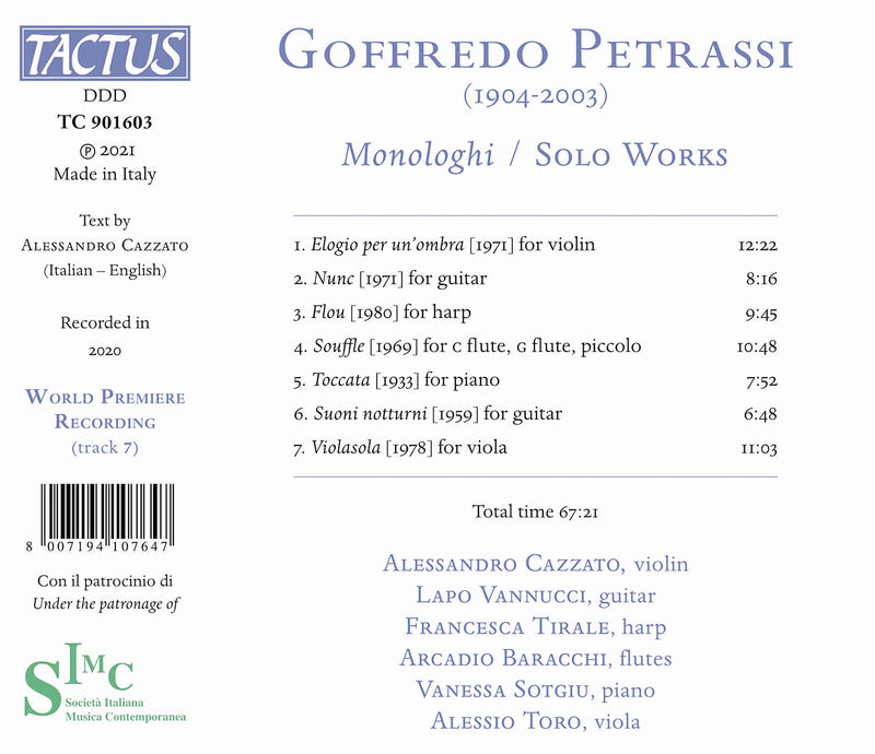 On SaleTactusPetrassi: Monologhi - Solo Works / Cazzato, Tirale, Baracchi, Vannucci, Toro, Sotgiu
