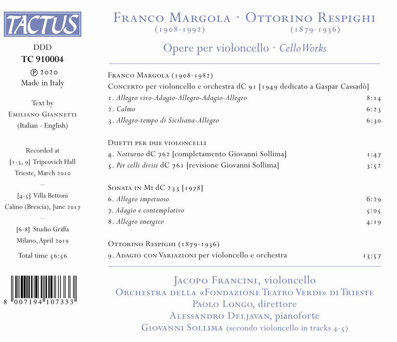 TactusMargola - Respighi: Cello Works / Francini, Sollima, Deljavan