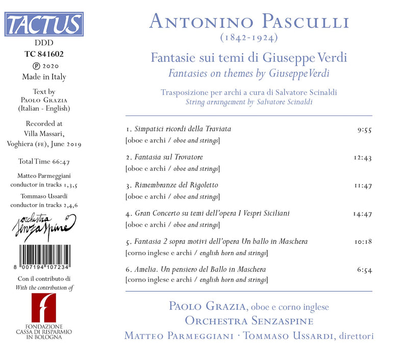 TactusPasculli: Fantasie sui temi di Giuseppe Verdi / Grazia, Ussardi, Parmeggiani, Orchestra Senzaspine