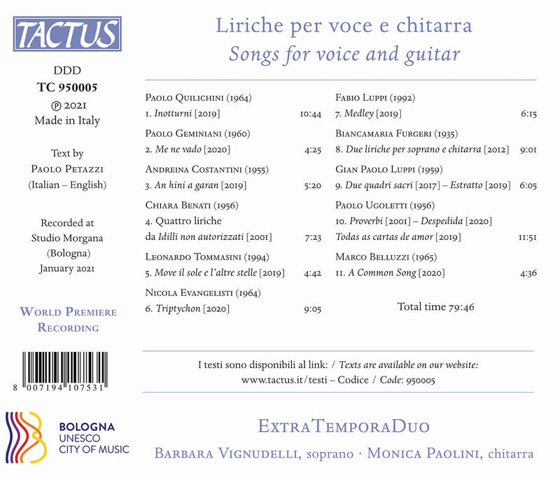 TactusLiriche Per Voce E Chitarra / Vignudelli, Paolini, Extempora Duo