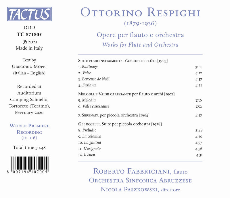 TactusRespighi: Works for Flute and Orchestra / Fabbriciani, Paszkowski, Abruzzese Symphony Orchestra