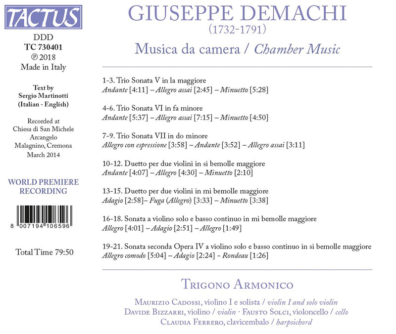 Uncertain and mysterious remain the origin and the musical education of Giuseppe Demachi, who after he was established was a composer rather...