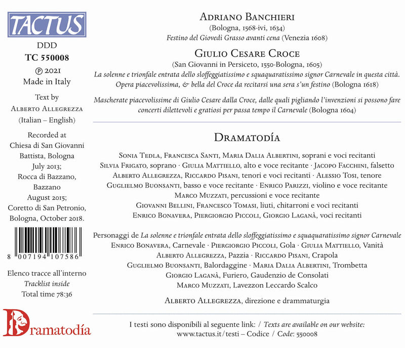 TactusBanchieri, Croce: Il Festino del Giovedì Grasso / Bonavera, Allegreza, Dramatodía